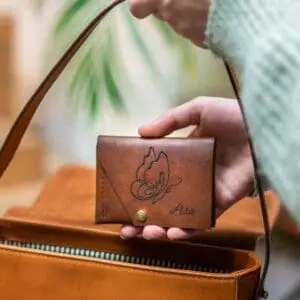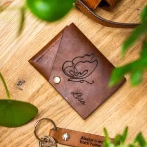 We kunnen speciaal voor jou een unieke persoonlijke tekst op de voorzijde van de portemonnee graveren met onze lasergraveer machine. Dat kan een naam, initiaal of een persoonlijke quote zijn.