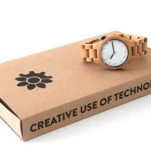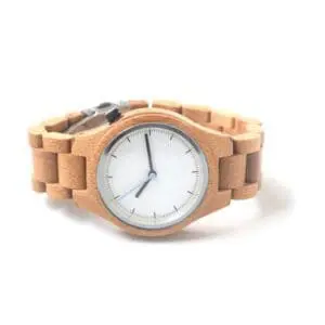 This wooden watch is a real eye-catcher. The watch combines a high quality Japanese quartz movement with a durable material, bamboo or sandal wood, giving it a luxurious natural look. Wooden watch has a strap made of a soft quality genuine leather or has a completely wooden link strap.