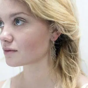 Un bel ensemble de boucles d’oreilles en bois d’un design élégant et sophistiqué; inspiré par les merveilleuses structures des ailes d’un insecte.