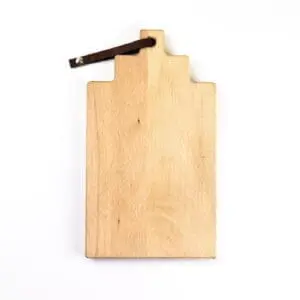 Les planches à goûter en bois de bouleau sont fabriquées avec soin et passion dans notre atelier du centre de Breda. Si vous commandez une étagère, nous nous mettrons au travail pour vous. La planche est gravée avec votre texte personnel dans l’une de nos machines de gravure laser. L’étagère est ensuite nettoyée et traité avec une huile neutre alimentaire. La planche peut être utilisée pour couper votre pain ou pour servir des collations.