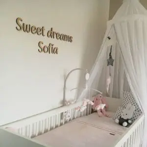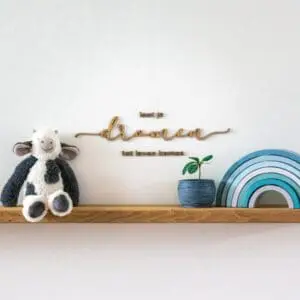 Les lettres en bois sont un cadeau idéal pour une chambre d’enfant. Elles sont idéales pour afficher le nom du bébé au-dessus du berceau ou le nom de l’enfant sur la porte de la chambre, ou pour créer des textes inspirants tels que « Dream Big Little One » au-dessus du berceau. Ces lettres en bois sont parfaites pour ajouter une touche personnelle à la chambre de bébé. Qu’il s’agisse d’un simple nom ou d’une citation créative, ils offrent des possibilités infinies de décoration et constituent un beau cadeau de maternité ou d’anniversaire unique. Avec des lettres en bois, vous pouvez créer une atmosphère affectueuse et inspirante dans n’importe quelle chambre d’enfant.