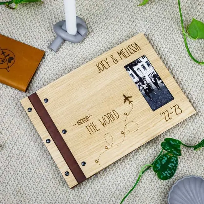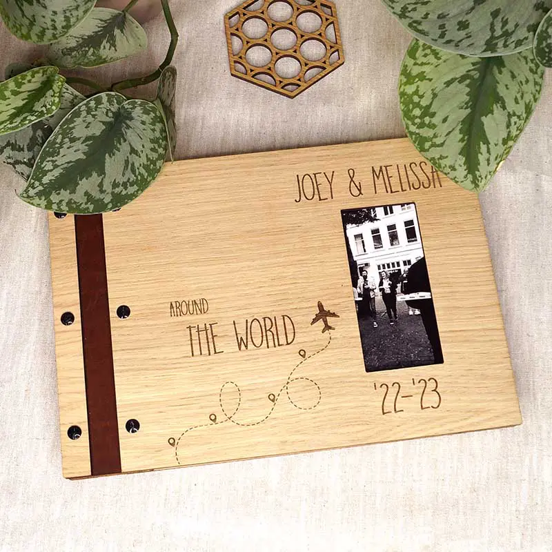 Créez votre propre livre photo de voyage personnalisé ! Faites de cet album photo un objet unique en gravant la date et le pays sur le devant et ajoutez de belles illustrations. Ce livre photo en bois fait à la main est un cadeau unique pour tout amateur de voyage ou, bien sûr, un cadeau spécial pour vous-même afin d’y conserver vos meilleurs souvenirs.
