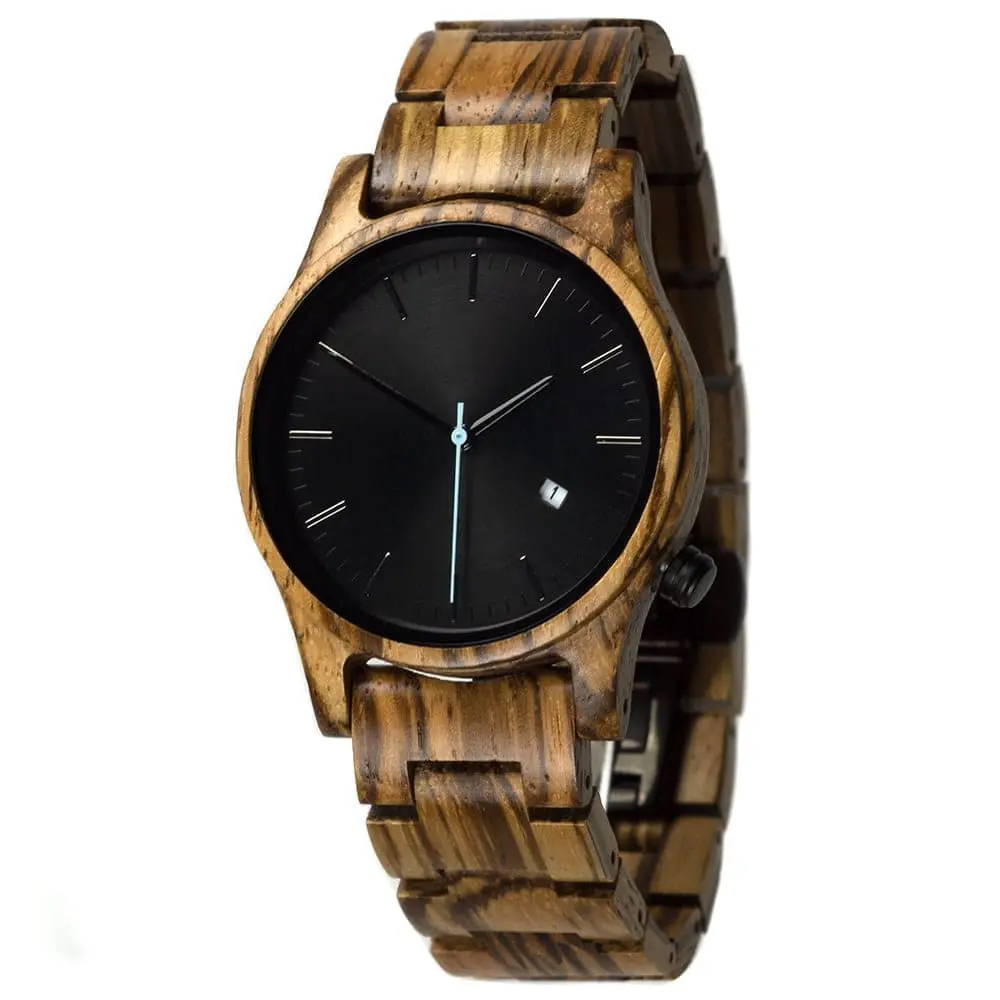 The watches are made from the sustainable woods bamboo, zebrano or sandalwood. Each type of wood has it’s own unique color!